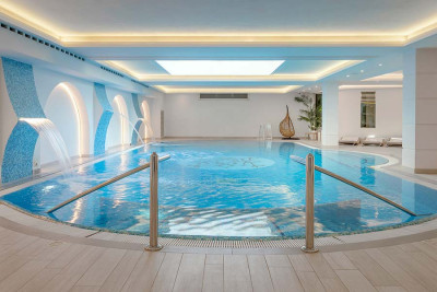 It also has a large indoor pool measuring over 110m², spacious wet area with Kneipp course, sauna, bio-sauna, Turkish bath, six showers, with different water temperatures and fragrances, and private spa.