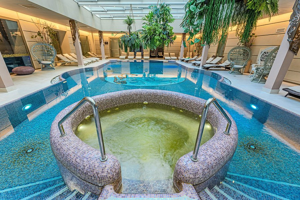 Guests can rejuvenate in the thermal pools, enjoy personalized treatments, and savour fine wines on the panoramic terrace.