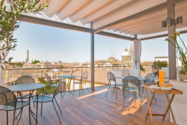 Hotel Touring is an elegant 4-star hotel in Bologna’s historic centre, conveniently located not far from its main streets and tourist attractions. It is just a five-minute walk from the city’s main square, Piazza Maggiore, and there are lots of shops and restaurants nearby. Enjoying a relaxing stay at Hotel Touring is always a good choice, regardless of whether you are in Bologna on a business or leisure trip. The hotel has 30 rooms, five suites – including one with a kitchenette – on four floors, divided into: Classic, Urban and Gold. Each room has all the amenities guests could hope for: soundproof walls, air conditioning, Wi-Fi, LCD TV with international satellite and digital terrestrial channels, and a safe. The hotel also has a rooftop terrace with a Jacuzzi, open from June to September, where guests can sip a drink while relaxing. Some of the rooms on the top floor also have a balcony, from which guests can enjoy stunning views over the rooftops of Bologna and the nearby hills. We recommend that you leave your car in the hotel’s private car park and explore the city on foot. You won’t regret it! The hotel is situated within easy reach of the golf courses in Bologna, Modena and Ferrara.